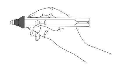 - Hold the pen perpendicular to the board, as shown below. Do not cover the black section near the tip of the pen.