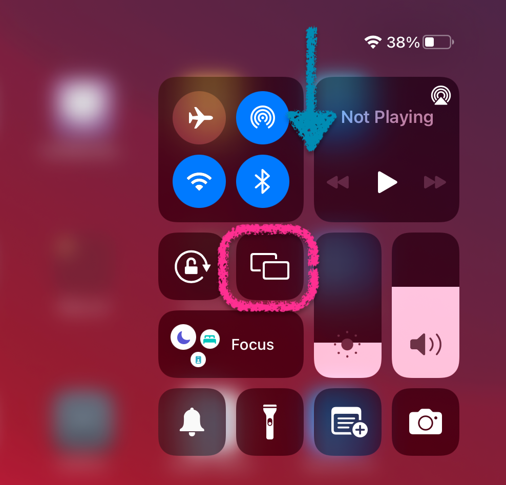 - To view the entire iPad Home screen > tap the Home button on the board menu > tap HDMI2. On your iPad use the ScreenSharing option from the Control Center (slide your finger on your iPad down from the top right corner) to your room’s Apple TV.